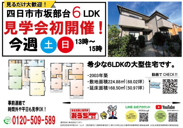 【四日市市坂部台】6LDKの大型物件、自由見学会初開催♪