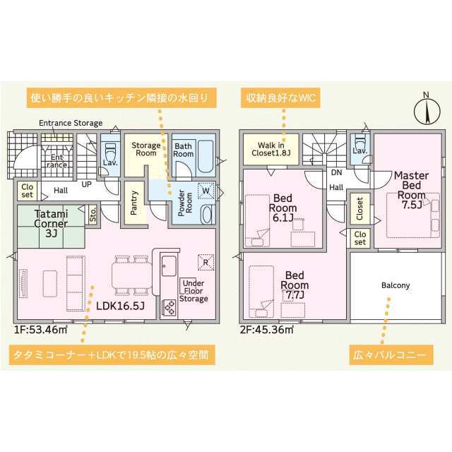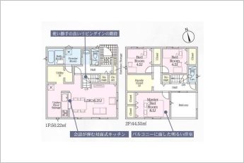 | 設備 | 温水洗浄便座、トイレ2ヶ所、浴室乾燥機、システムキッチン、カウンターキッチン、浄水器、床下収納、プロパンガス、複層ガラス、モニタ付インターホン、ディンプルキー、ルーフバルコニー、[火災警報器等設置済] | ||