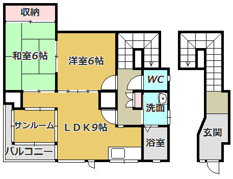 | 間取り | 3LDK | 間取り内訳 | LDK9畳 和6畳 洋22畳 洋6畳 |