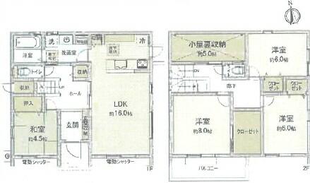 | 間取り | 4LDK | 間取り内訳 | 和4.5畳×1室 洋8畳×1室 洋6畳×2室 LDK16畳×1室 |