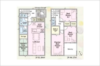 | 設備 | 温水洗浄便座、トイレ2ヶ所、浴室乾燥機、システムキッチン、カウンターキッチン、浄水器、床下収納、プロパンガス、複層ガラス、モニタ付インターホン、ディンプルキー、ルーフバルコニー、[火災警報器等設置済][シューズインクローゼット] | ||