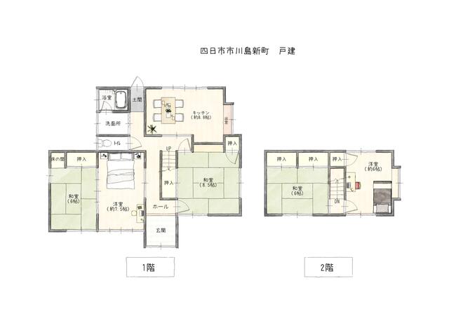 | 間取り | 5DK | 間取り内訳 | 和8.5畳×1室 和6畳×2室 洋7.5畳×1室 洋6畳×1室 DK8.8畳×1室 |