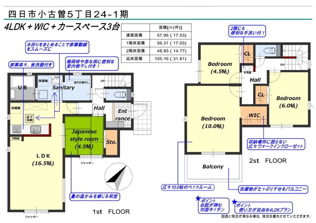 | 設備 | 温水洗浄便座、トイレ2ヶ所、浴室乾燥機、システムキッチン、浄水器、食器洗浄乾燥機、ウォークインクローゼット、床下収納、電気、都市ガス、上水道、下水道、複層ガラス、モニタ付インターホン、ディンプルキー、ルーフバルコニー、建設住宅性能評価取得(予定含む)[バス1坪以上][火災警報器等設置済] | ||