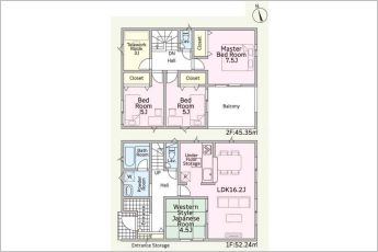 | 設備 | 温水洗浄便座、トイレ2ヶ所、浴室乾燥機、システムキッチン、カウンターキッチン、浄水器、床下収納、プロパンガス、複層ガラス、モニタ付インターホン、ディンプルキー、ルーフバルコニー、[火災警報器等設置済] | ||