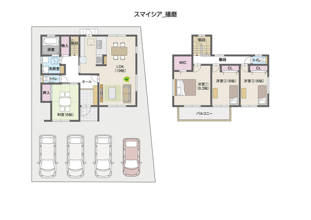 間取り | 4LDK | 間取り内訳 | LDK19畳 和6畳 洋8.3畳 洋6畳 洋6畳 |