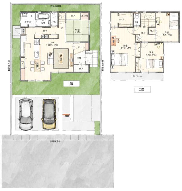 | 設備 | 温水洗浄便座、トイレ2ヶ所、追焚機能、浴室乾燥機、システムキッチン、カウンターキッチン、IHクッキングヒーター、浄水器、食器洗浄乾燥機、ウォークインクローゼット、床下収納、洗髪洗面化粧台、都市ガス、上水道、下水道、複層ガラス、床暖房、モニタ付インターホン、庭、駐車場3台分 | ||