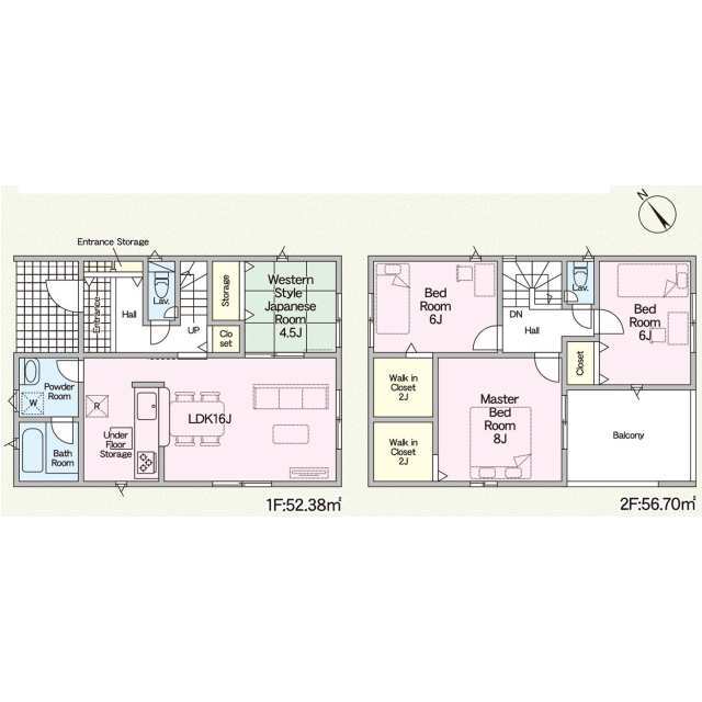 | 設備 | 温水洗浄便座、トイレ2ヶ所、浴室乾燥機、システムキッチン、カウンターキッチン、浄水器、ウォークインクローゼット、床下収納、洗髪洗面化粧台、電気、プロパンガス、上水道、下水道、複層ガラス、モニタ付インターホン、ディンプルキー、ルーフバルコニー、建設住宅性能評価取得(予定含む)[火災警報器等設置済] | ||