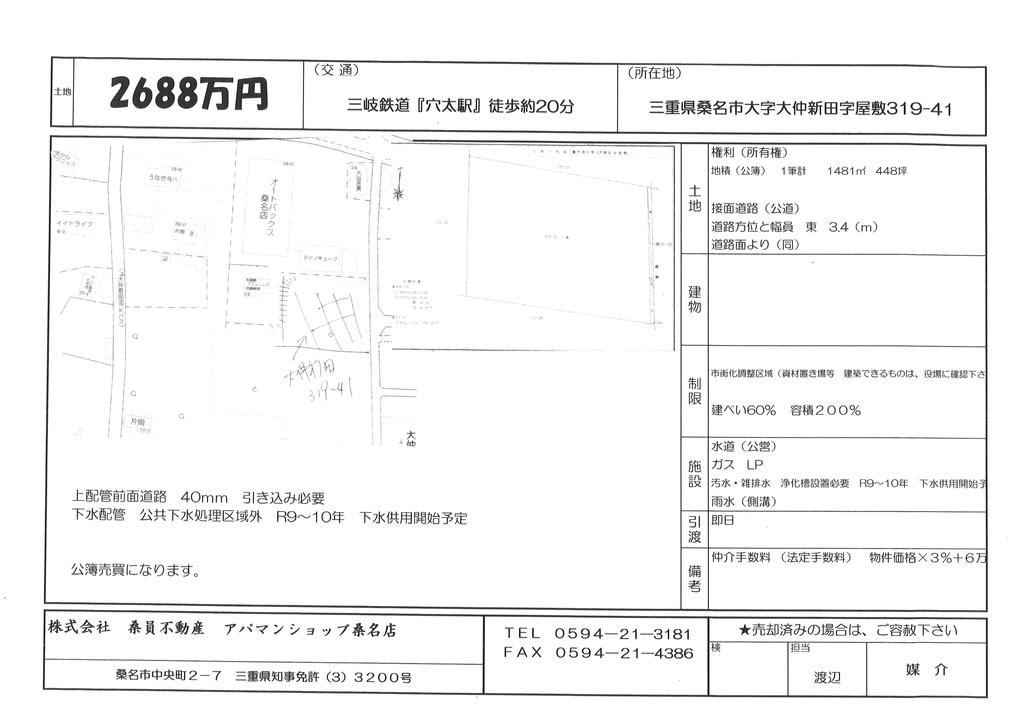 | 現況 | 更地 | 取引態様 | 媒介 |