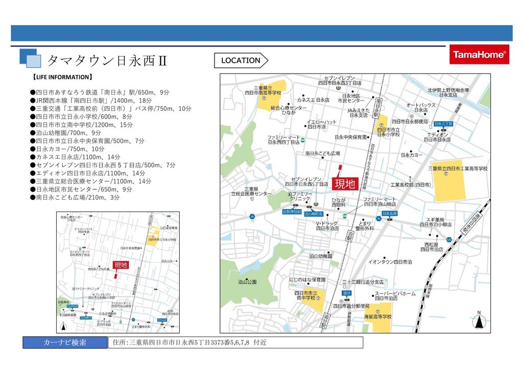 ※地図上の「対象地」は「〒510-0891 三重県四日市市日永西5丁目」の場所を指しています。実際の場所ではない場合がございます。詳しくはお問い合わせください。