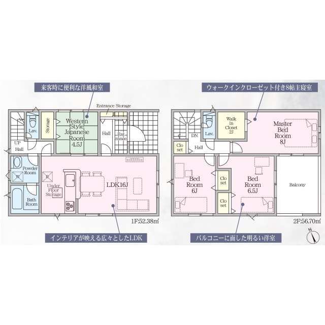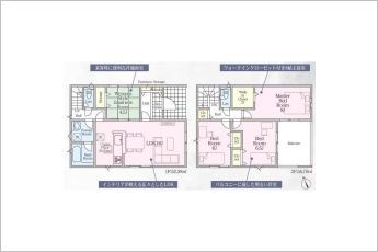 | 設備 | 温水洗浄便座、トイレ2ヶ所、浴室乾燥機、システムキッチン、カウンターキッチン、IHクッキングヒーター、浄水器、ウォークインクローゼット、床下収納、洗髪洗面化粧台、電気、上水道、下水道、複層ガラス、モニタ付インターホン、ディンプルキー、ルーフバルコニー、建設住宅性能評価取得(予定含む)[ガスその他][火災警報器等設置済] | ||