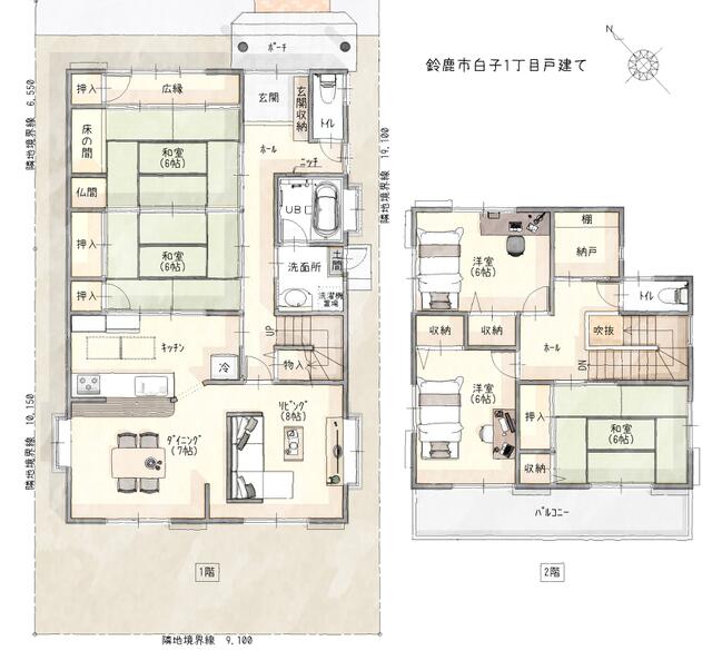 | 設備 | 温水洗浄便座、トイレ2ヶ所、追焚機能、システムキッチン、カウンターキッチン、食器洗浄乾燥機、洗髪洗面化粧台、プロパンガス、上水道、下水道、モニタ付インターホン、駐車場2台分 | ||