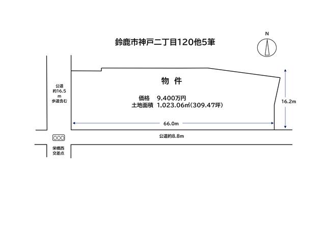 | 接道状況 | 南8.8m 公道 接面66m 西16.5m 公道 接面16m 角地 | ||